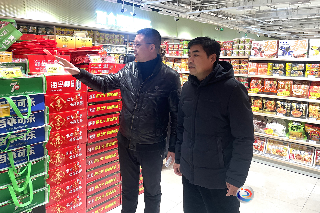 在恋家超市,检查组仔细查看了粮油肉蛋奶、蔬菜水果、年货礼盒等主要生活必需品的供应情况、价格标识及储备库存。超市内货架丰满、品类齐全,购销秩序井然,浓厚的“年味”扑面而来。