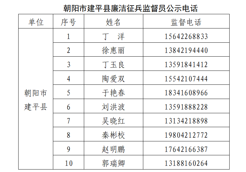 朝阳市建平县廉洁征兵监督员、监督举报渠道公示